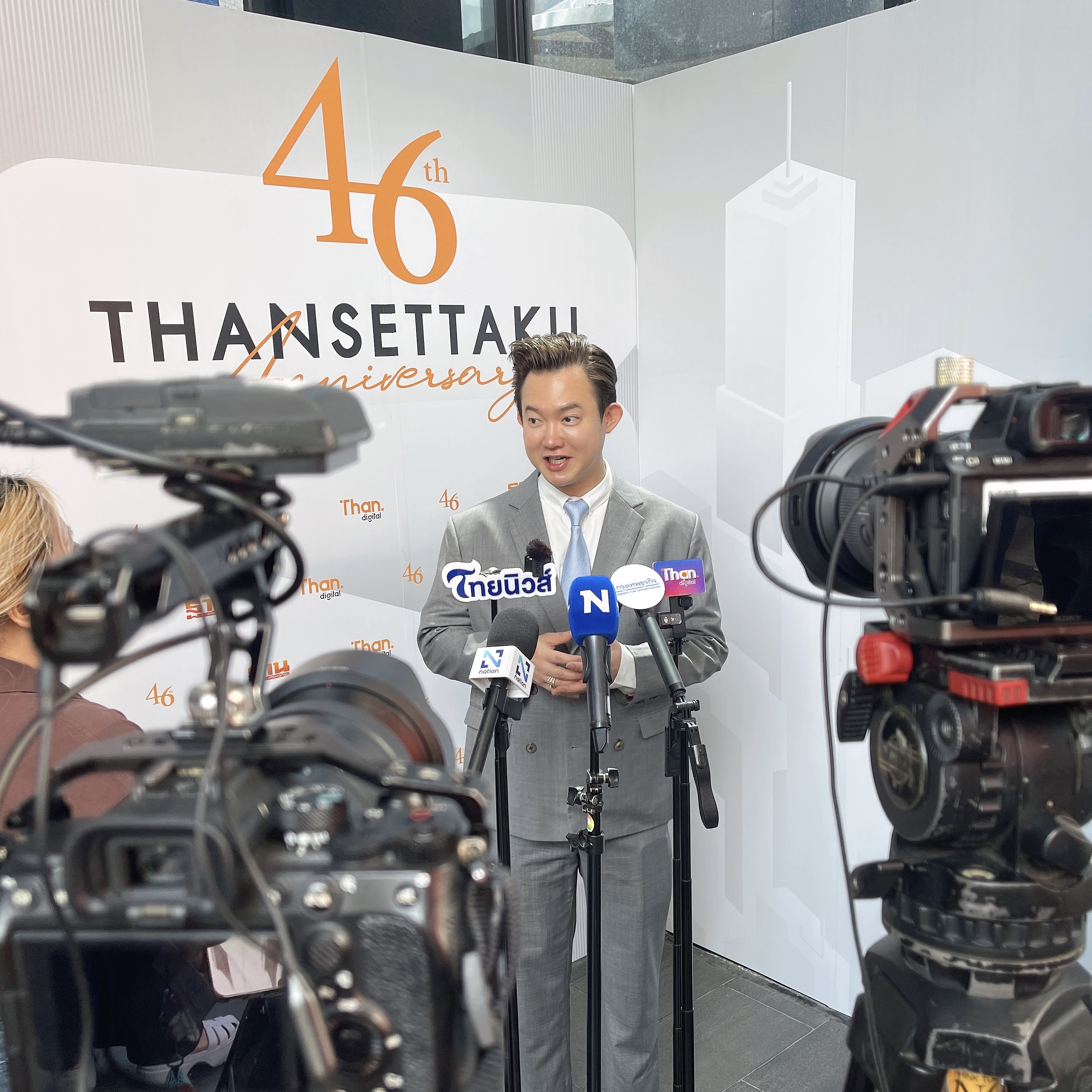 คุณวรเดช รุกขพันธุ์ ประธานเจ้าหน้าที่บริหาร บริษัท วี บียอนด์ ดีเวลอปเม้นท์ จำกัด (มหาชน) เข้ามอบของที่ระลึกแสดงความยินดีเนื่องในโอกาสครบรอบ 46 ปี สื่อ ฐานเศรษฐกิจ สื่อธุรกิจชั้นนำของเมืองไทย โดยบรรยากาศเต็มไปด้วยความอบอุ่น ณ อาคารอินเตอร์ลิงค์ ทาวเวอร์